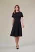 Effortlessly elegant, this short-sleeve fit-and-flare dress features subtle bust darts and a defined waist seam for a flattering silhouette. Made from comfortable jersey fabric, it’s unlined for a lightweight feel and finished with a concealed back zip for a clean look. Available in Navy and Black.