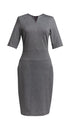 Designed for comfort with a touch of elegance, the Celeste Jersey Dress features a stylish notch neckline, flattering half sleeves, and a wide stretch waistband for ease of movement. Functional side pockets and a centre back zip with satin ribbon detailing add both practicality and polish. Available in Navy, Grey, and Black.