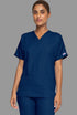 This classic-fit scrub top features a flattering V-neckline, easy-moving dolman sleeves, and side vents for all-day comfort. Designed with functionality in mind, it includes two spacious patch pockets and a dedicated cell phone pocket. The centre back length measures 26 ½".