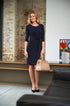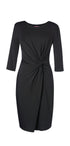 A timeless silhouette with modern comfort, this 3/4 sleeve jersey dress features a classic round neckline and a flattering gathered waistline. Fully lined with stretch fabric for ease and elegance, it offers a refined look with all-day wearability. Available in Navy and Black.