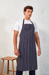 A favoured style with the more traditional occupations in the industry, this 'Butcher's' bib apron offers great protection for the wearer and is embellished with vertical stripes. The striped pattern continues across the neckband and ties.