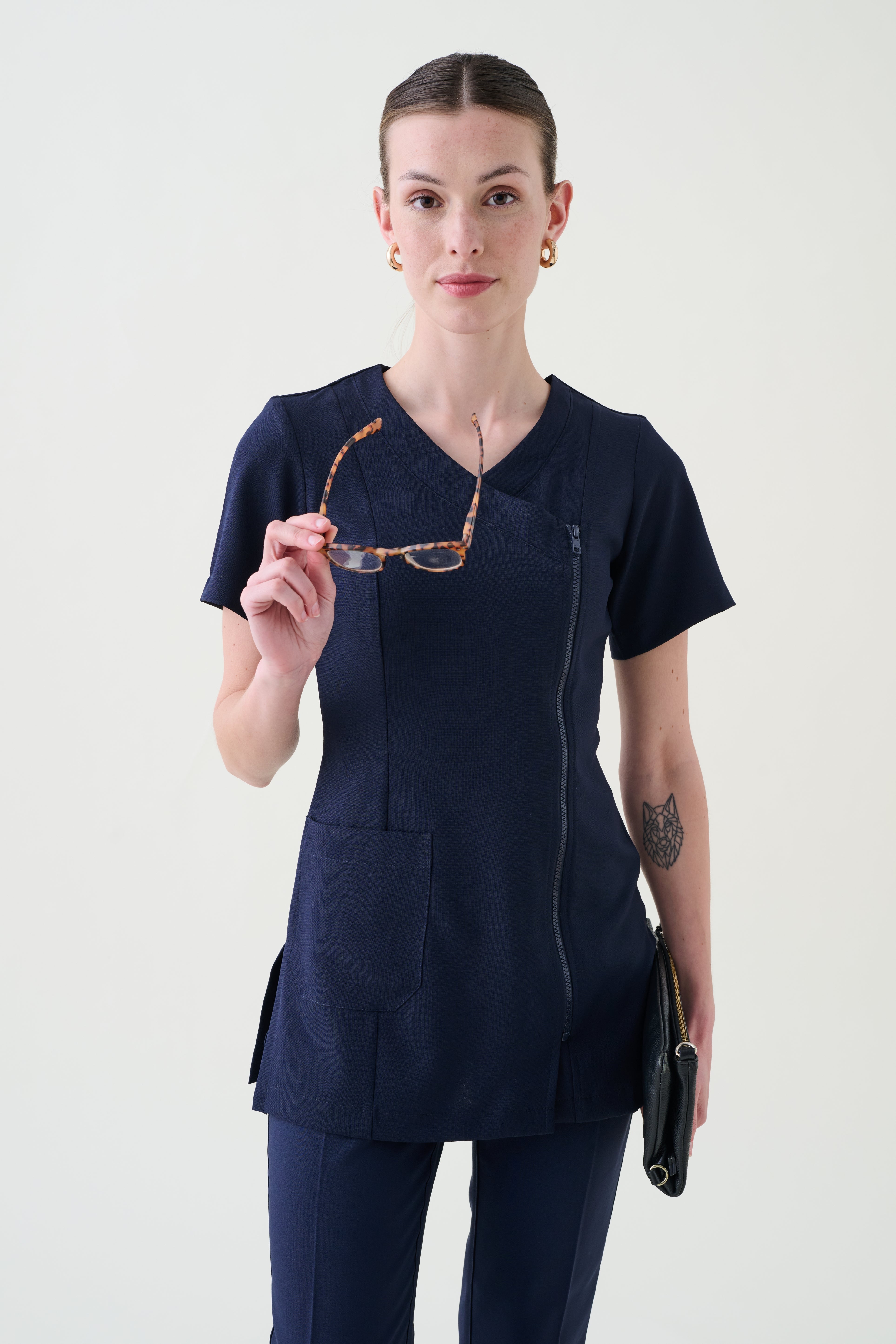 Update your professional look with our Senna Tunic, a flattering and practical choice with a front pocket.