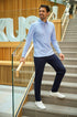 Combining comfort with a tailored look, these flat-front jersey trousers feature a stretch waistband and belt loops for a secure fit. Designed with two side pockets and two back hip pockets, they offer everyday ease with a smart, structured finish. Available in Black and Navy.