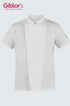 The short-sleeved Tommaso chef jacket features a double-breasted buttoning, a rounded collar and a pen holder on the left sleeve. It has a Slim Fit fit and is characterised by the removable buttons on the front bib. It has the long sleeve variant in the Adriano jacket.