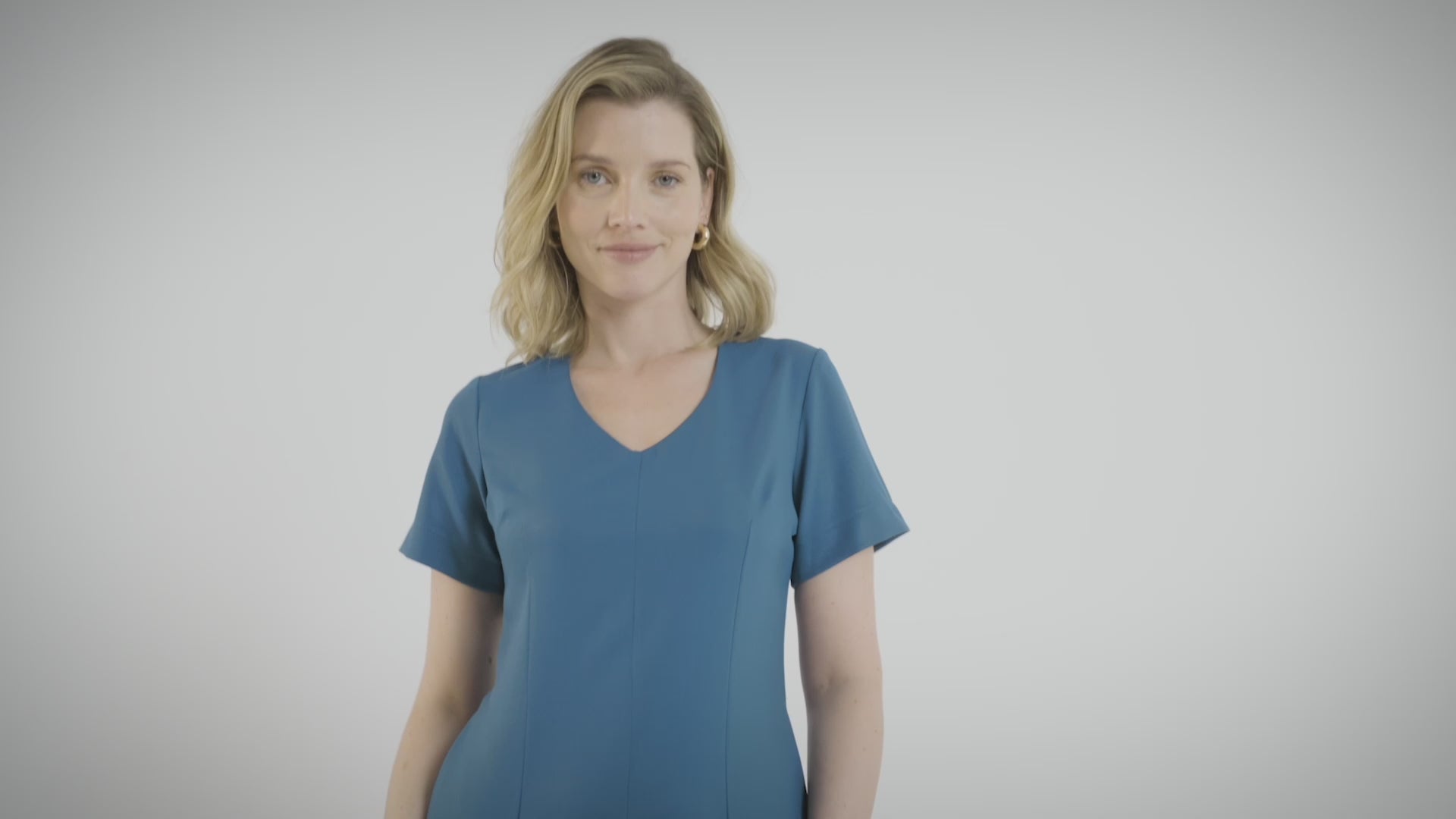 Our Vibrant Viva Tunic features a flattering V-neckline, easy back zip closure, and convenient side seam pockets for effortless style and comfort.